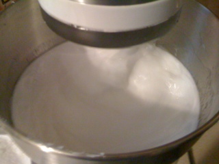 Glycerin, melted soap, and bath whip are blended until the mixture has the consistency of marshmallow creme