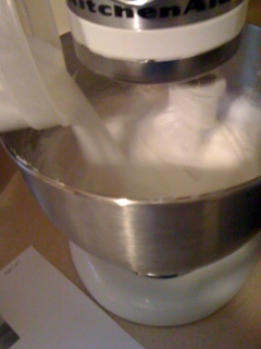 Sugar is added slowly to the fluffy mixture. It starts getting super thick.