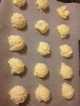 At first the blend seemed really neat and had an interesting consistency. To try and keep things even I used a cookie scoop, although I had to experiment for awhile to consistently scoop about .70 ounces each time (I developed a fun little twist and press method that somehow helped me be more consistent). I baked them and realized while the first batch of 15 were going that I was making a whole lot more than the recipe said it would yield. To be fair to myself the recipe was pretty dag on general with no tips on packaging, expected consistencies, how it would spread, etc. Anyway, with the cookie scooper I ended up with 40 “cookies”. I admit that I sat in a chair and stared at the first baked batch for awhile before continuing. Lol. First off they certainly did not brown at all, let alone the lightly that the recipe said to look for. Do not overbake was stressed, so once they baked almost twice as long as called for I said screw the looks. *grin* The second surprise is that they didn’t spread in the least. Since they were called a cookie I expected them to melt down into a tiny cookie no different than a standard cookie, since several of the base ingredients are the same. As you’ll see in the pictures they didn’t change in the slightest except hardening. I think mine are a little more like drop biscuits. Lol. Finally I was a little surprised to go to scoop up the second batch and they started falling apart. I poked around in the batter a bit and noticed that the interesting foam-like texture had faded into an almost streusel in the 8 minutes of baking and letting the first batch cool for a few to remove. After a little quick thinking I pulled the SAO back out and added a teaspoon, mixed it in as best as I could, and then added a second. I made the remaining mixture into a big clump to hold the moisture, but I still had a lot of problems with the biscuits crumbling as I ejected them from the scoop. Meh!