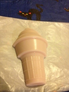 To top things off I experimented with making the ice cream cone soaps. I’ve read a lot of crafter reviews and learned that the best technique is to pour the cone color for the entire mold. After it sets remove the soap and cut off the ice cream scoops, setting aside the cone colored scoops to melt and use in the next. Tomorrow I will then pour the scoops after treating the point of attachment. I’m really hoping this turns out well, so it’ll replace the dessert cake soaps. The brown dye came out an interesting color, but I happen to like it, so it stays. *grin* I could say that I’m going to do pretty scoops – one strawberry and the other vanilla, by following the same technique as for the cone, but I’m honest enough with myself to know that I won’t. Lol. I’ve decided to try to do them as chocolate, that way if the FO’s vanilla content causes the scented scoops to brown, it’ll actually work out to my benefit instead of having to take a loss. I may experiment on my Christmas gift ones (I can’t wait to see how the little ones respond) and paint little accents like chocolate sprinkles or something else fun.