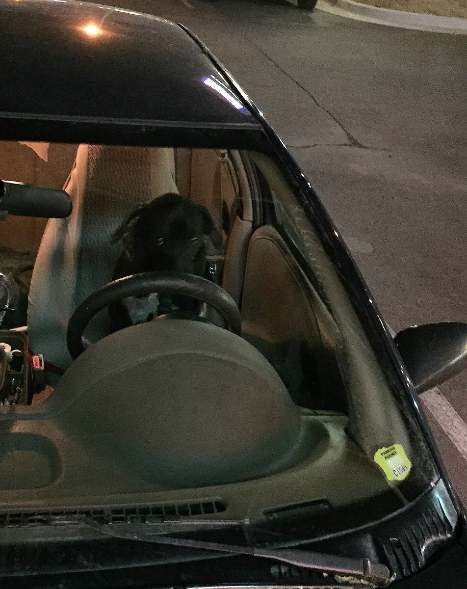 While we went on a little ride into the city Larry went into a shop to grab some take out since I didn’t feel up to cooking yet. Bo promptly started looking for Larry and climbed into the driver’s seat when he spotted Larry through the window, and Larry snapped this picture while walking back to the car. Bo has the guiltiest look on his face. *laugh* He tries to pull the “puppy eyes” when he thinks he’s in trouble or he’s begging for a t-r-e-a-t (thankfully he hasn’t learned the spelling of his favorite word yet lol). “Um, don’t mind me, Daddy. I’m just keeping your spot warm for you since it’s so cold outside.” *grin* Mmhmm, naughty pup.