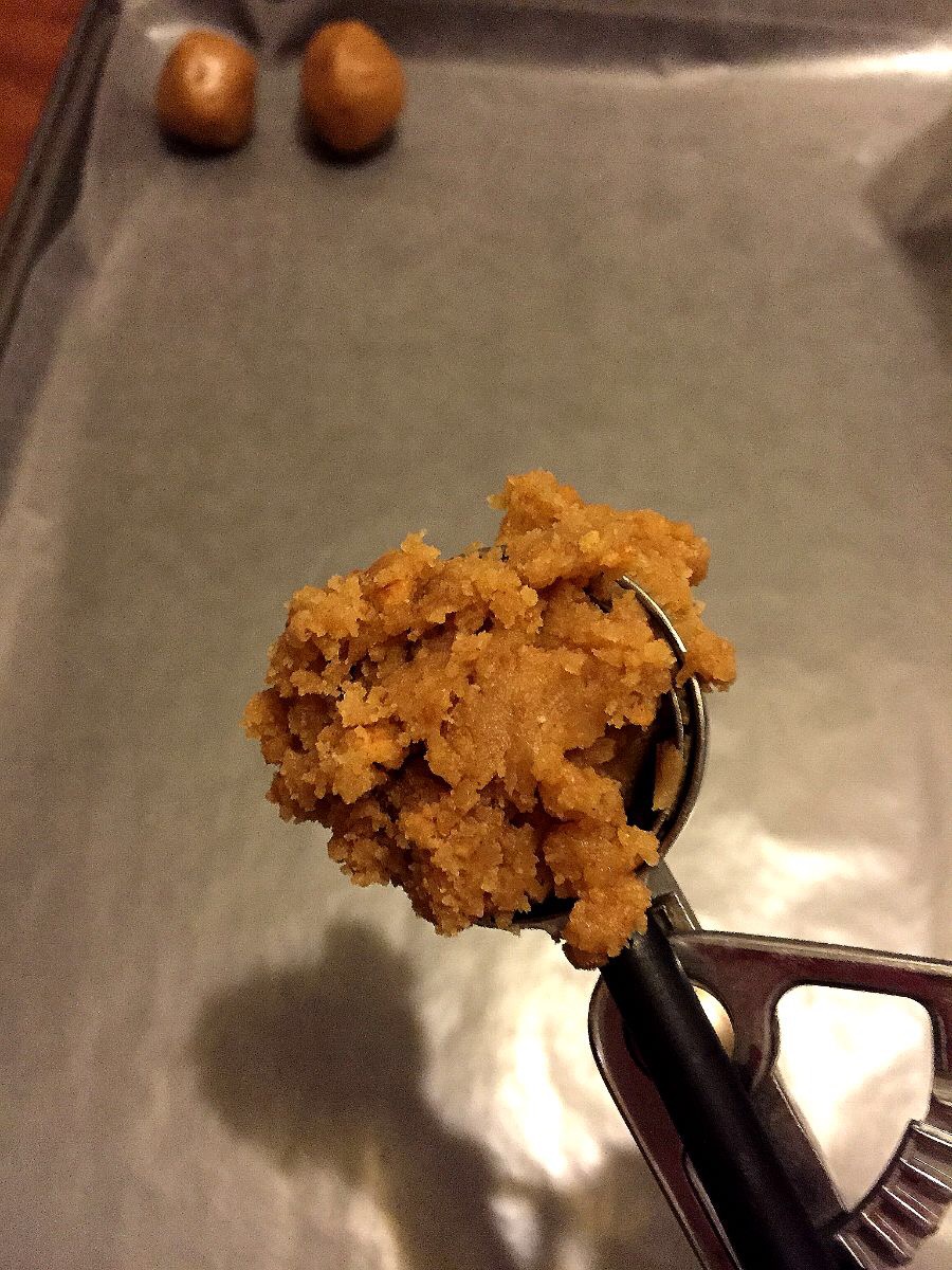 One handy step in making these, other than the scoop taking the work out of trying to keep things somewhat uniform, is to smash the scoop of filling in your hand, and then roll it into a ball between your hands. The smashing seems to help it stick together better and makes rolling a lot easier without crumbs trying to escape.