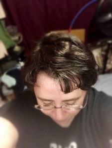 I am actually blessed to have an incredible disability psychiatrist that really understands how my mind works, gives me great resources, and has helped me to empower myself (which will most likely be discussed a lot in my next post). Anyway, even if I’m not doing well physically, just knowing that I’m going to see her puts me in a great mood and I tend to have extra energy, from the mental boost, to put a little more effort into getting ready. So today I decided to try out the Sugar Plum Vibrant hair chalk, especially since I played with adding some curl to the new haircut. Only one spot truly showed the plum and that’s where I usually have a small white streak I developed after the abuse, which my dye turns into a soft brown highlight. Apparently chalk adheres to that better as well. *laugh* Overall, either it couldn’t be seen at all or it just gave a soft red undertone to the dark brown overall color. It is still fun and easy to work with, but I definitely recommend that you either have the ability to keep your arms up and apply quite a bit to make it vibrant, or else use it on lighter hair. Since the gold went so well and actually looked great with my complexion, I’m looking at adding some gold/light brown streaks in permanent. The pics totally didn’t turn out well (my hair got all sorts of wild with the high winds and I didn’t have time to take pics before we left unfortunately lol), and like I said, there’s one tiny spot on what will be the right side of the pics, that is clearly visible. At least it gives you an idea if it might work for you though.