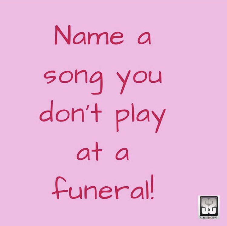 He then scrolled through some of the comments (mostly repeats of 3 songs) and I thought it might be some politically incorrect fun to make an actual list. Most are meant to be sarcastic, macabre, or just plain wrong. lol. I’d love to see your ideas for the list, so please take a moment to comment with them! 🙂