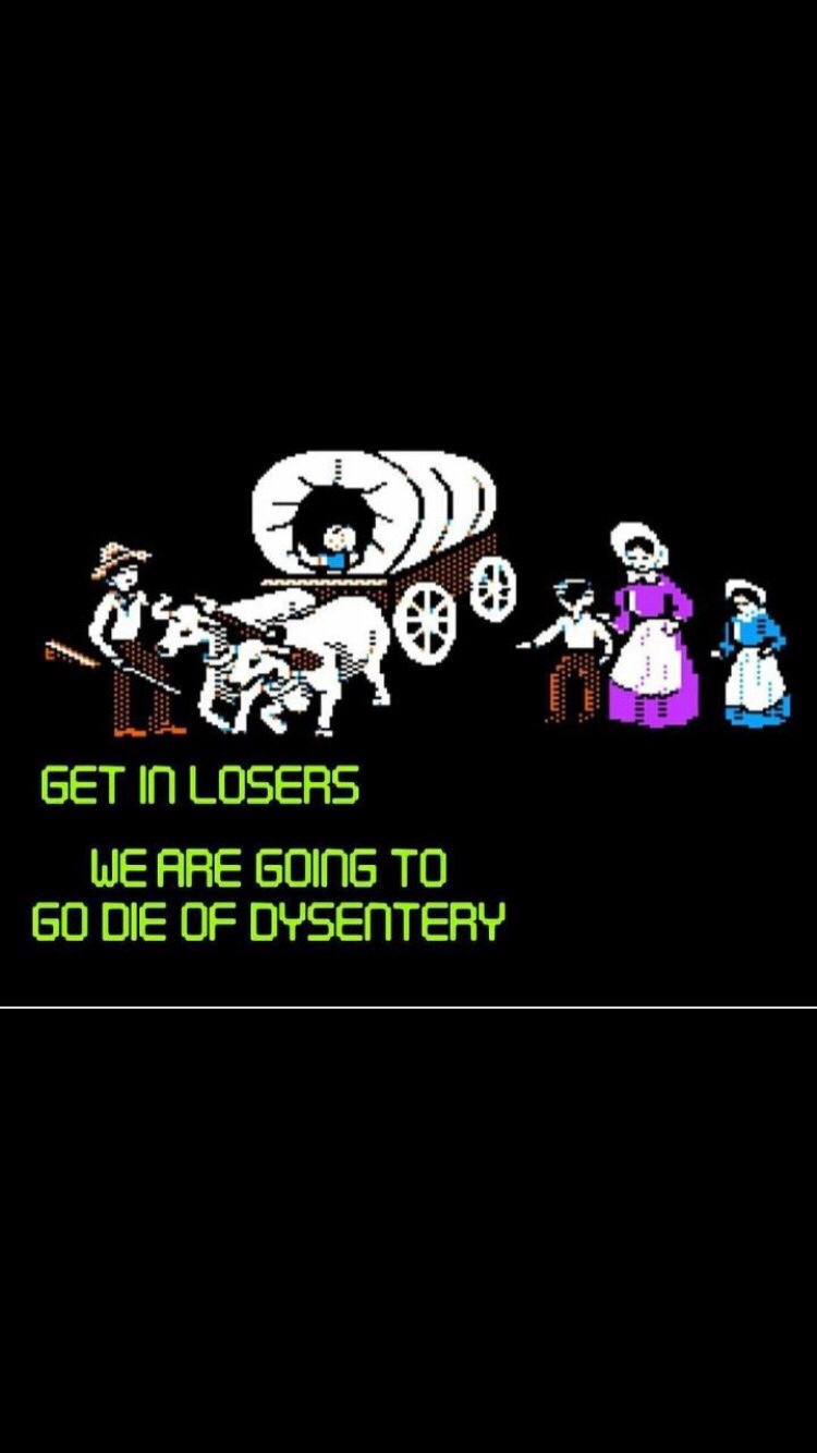 Fast forward through my life and whenever I feel like Murphy’s Law is being exceptionally cruel I say “you died of dysentery”. I had to stop watching documentaries about the actual Oregon Trail because my mind automatically went there. So I’d be the crazy person trying to muffle my laughter because every time they talked about the hardships I’d always wonder how many died of diarrhea.