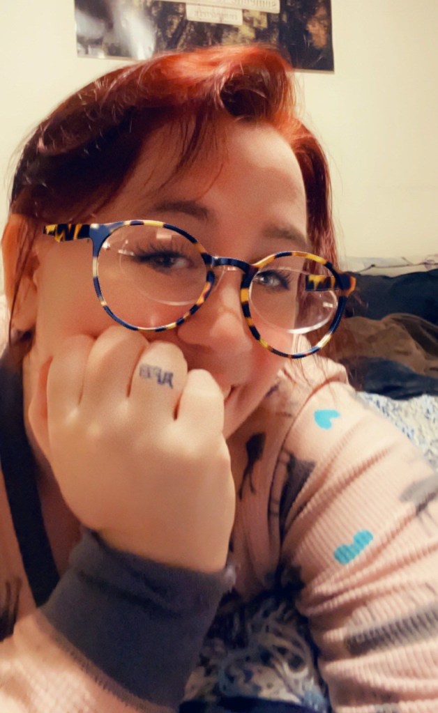 Insomnia hit despite my fatigue, so with L being off and us both still on graveyard shift sleep hours at the time, he helped trim my hair up and dye the undercut for me. It was a first for him on both and my first with an undercut, so we had a learning curve. Unfortunately my face is a bit red and splotchy in the pic because my seborrheic dermatitis has gone insane since I caught the virus. However, the debut of straight up Ruby!