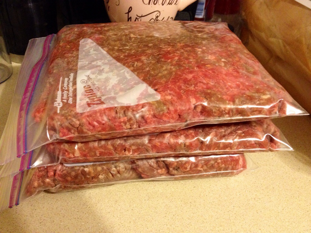 I thought I’d share a little tip today that’s been a huge help after we binge shop at Sam’s Club. Have you ever bought that big package of hamburger there, or at Costco, because you realized how much cheaper per pound it was than you’ve been paying at the regular grocery store, but then start to hate all of that ground beef because it’s taken up half of your freezer? Could just be a quirk of mine, but the tip works, so I’m still sharing it. Figure out your own situation that it might apply in. *teasing grin*