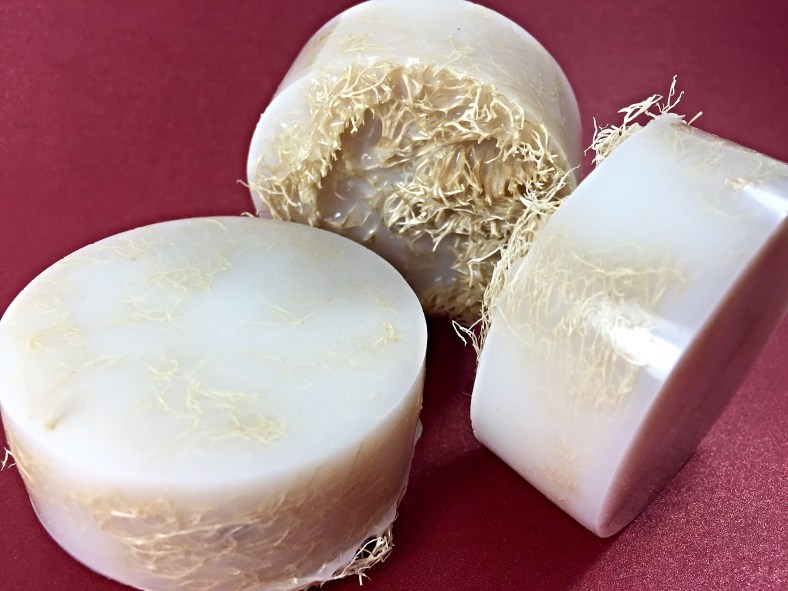 Sandalwood Luffa Soap at $2.25 each, available at http://www.georgiaspampering.com.