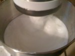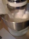 I made a massive batch (massive for me, at least) of sugar body scrub the other night and thought I’d give a little inside view into the creation. Don’t critique the pictures since I was having to work fast one-handed and try to snap a shot as I could. *grin* Another soapcrafter had posted the recipe for sugar scrub and it had a few super beneficial additives that I had never thought of, so I thought I’d adapt it to my interest and give it a whirl. Lo and behold, my inner calculator while reading the recipe was incredibly broken! I had no real clue that it would be so much until the liquid turned into the amazing fluff. lol With a sigh I realized that there was no turning back and grabbed my phone for some pictures to always remind me to not read product recipes when I have insomnia, since I apparently suck at math then. *cheesy smile*
