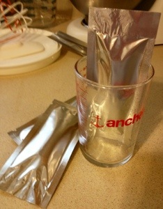 Now, I don’t know if you read the previous posts with the new sample packets that I found to use for this event. They look awesome and are such a cool idea. I mean, silver heat seal packets. That’s sharp! I managed to get in the kitchen and work on some of the samples.