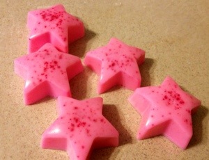 While those soaps were cooling I spotted that hot pink powder pigment that I was so excited about months ago, but never got around to trying. I have to clarify a possible misconception here. I like pink, sometimes a lot, and pampering myself, more than a lot, but I’m not a girly girl usually. I discovered about a year ago that hot pink for some reason makes me feel like a badass. Especially when it’s paired with black. There’s that little “Oh, I’m feminine” and then a bit of “And I’m obnoxiously in-your-face. Whatcha gonna do about it?!” I know, I have issues, but don’t judge. We all have our little badass quirks. Mine is oddly focused around a color. Lol. So… I got out the gorgeous packet and broke the seal with what was most likely an evil smile. Since it was 6AM by this point I decided I’d only do a few small star soaps and that Cotton Candy FO seemed to fit this soap. *Starts fidgeting now and whistling innocently* Now, keep in mind that I hadn’t slept in nearly 24 hours at this point. I wasn’t in a highly intelligent mode by then. But I was still as stubborn as ever and wanted to finish up. Figured it out yet? I totally screwed up when I added the pigment. I don’t usually ever use powder pigments and it honestly never hit my sluggish brain that it has to be incorporated differently than the regular stuff. I sprinkled the powder into the melted soap and watched as it chunked up like bad gravy clumps. Even whisking like I was possessed didn’t save the soap. However, I saw hot pink and my badass side whispered to just go for it even if it’s all wrong.