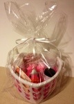 Along with the basket I’m donating fifty of those heat sealed lotion packets that I love and am terrified of ever trying to make again. *laugh* I kind of think it’s worth the burns for such a sharp little sample.
