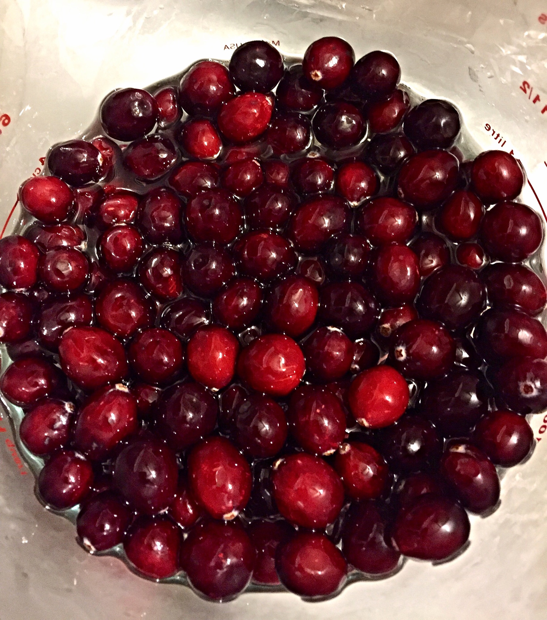 First off you rinse the fresh cranberries and then soak them overnight in simple syrup (I soaked them for 24 hours actually and used their 1:1 ratio syrup).