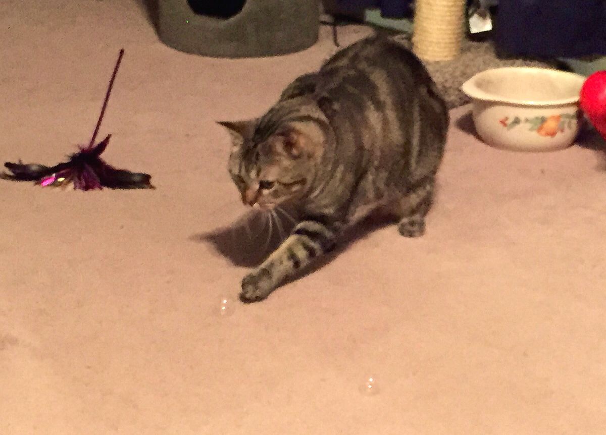 She also got brave and finally smacked one of the catnip bubbles that Larry blew for the fur babies. She’s a holy terror most of the time, but little cute moments like these make it so worth while.